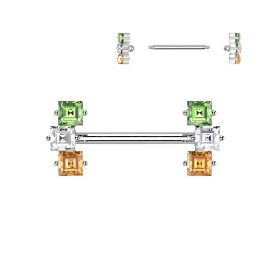 Rectangular Crystal + Pearl Nipple Barbell 14g