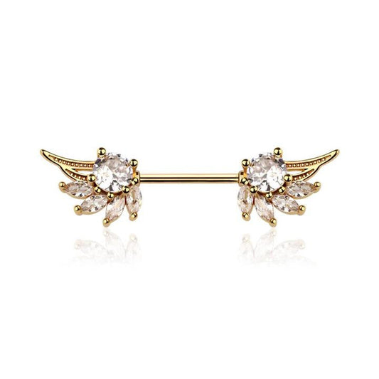 Embellished Crystal Angel Wings Nipple Barbell 14g