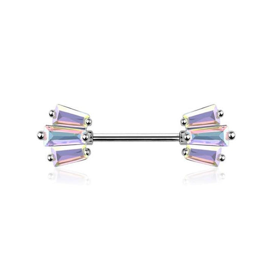 Triple Edge Crystal Nipple Barbell 14g