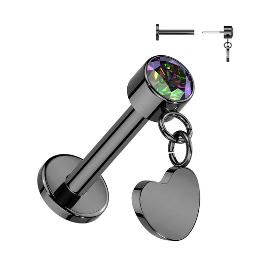 Premium G23 Titanium Luxe Heart Dangle Threadless Flat Back