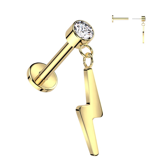 Premium G23 Titanium Luxe Lightning Dangle Threadless Flat Back