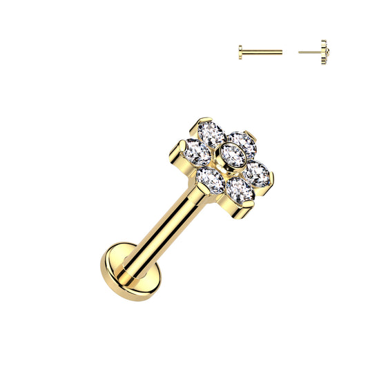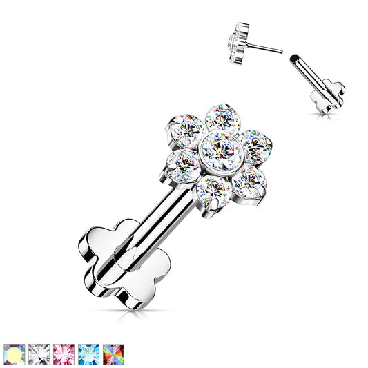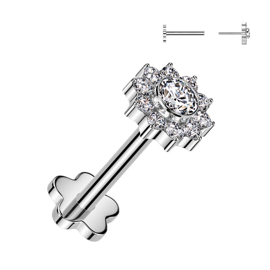 Premium G23 Titanium Crystal Cluster Middle Flower Threadless Flat Back