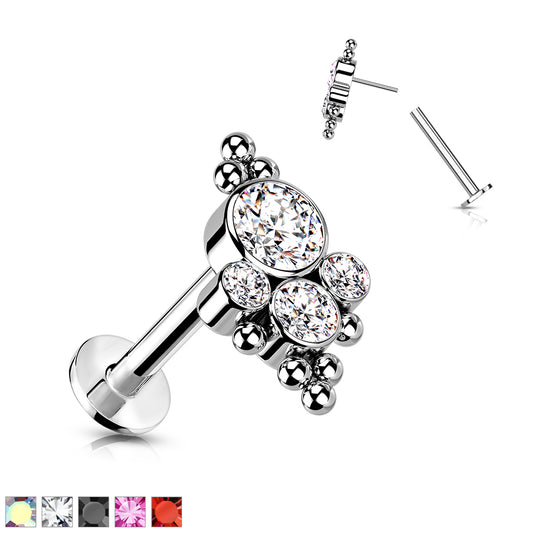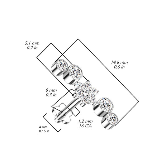 Premium G23 Titanium 5 Crystal Cluster Threadless Flat Back