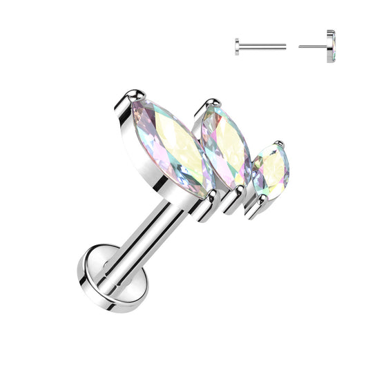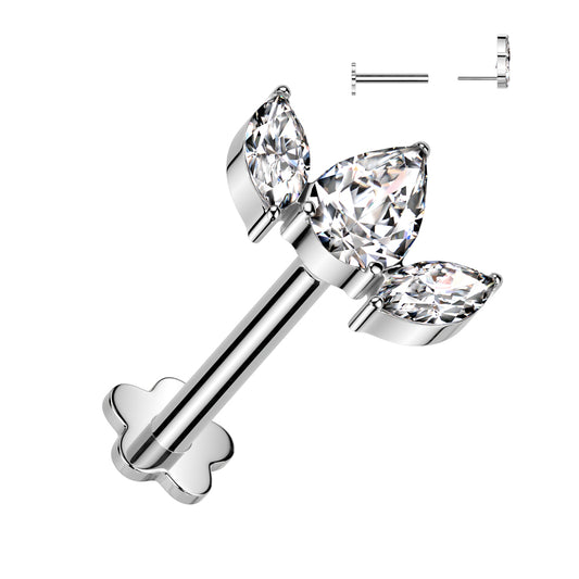 Premium G23 Titanium Triple Marquise Flower Base Threadless Flat Back
