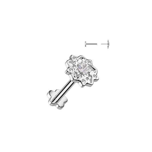 Premium G23 Titanium Flower Filigree Threadless Flat Back