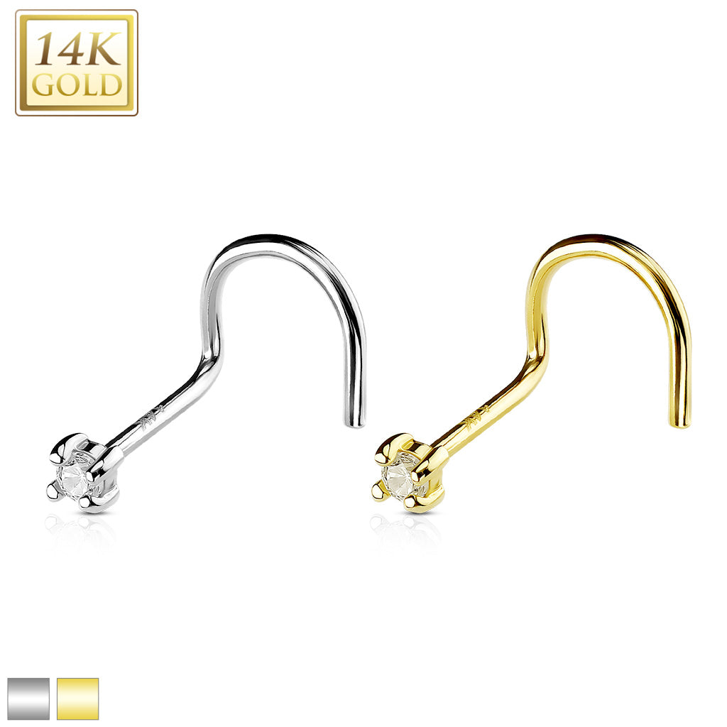 14K Gold Claw-Set Circular Crystal Nose Screw 20g