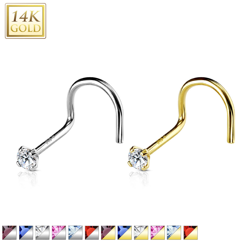 14K Gold Claw-Set Crystal Nose Screw 20g