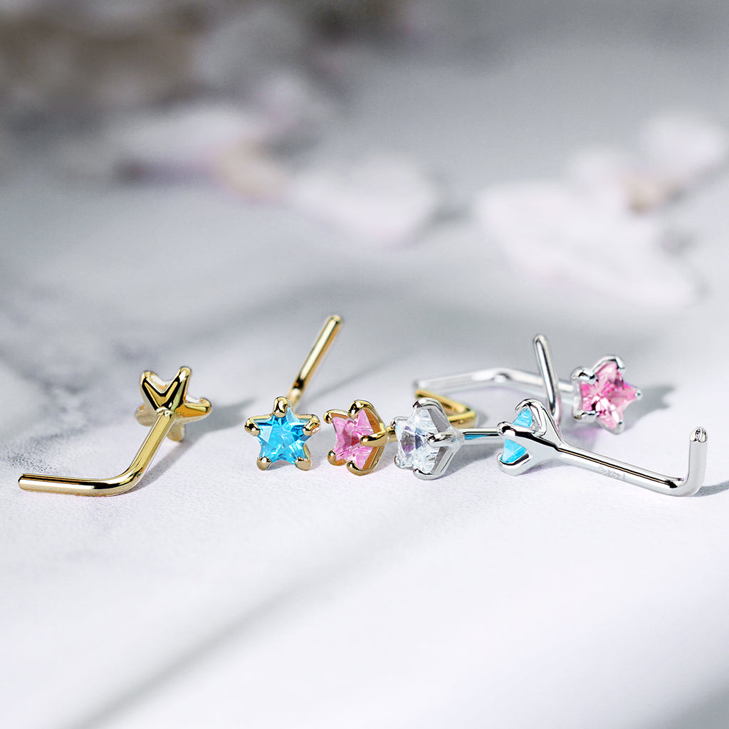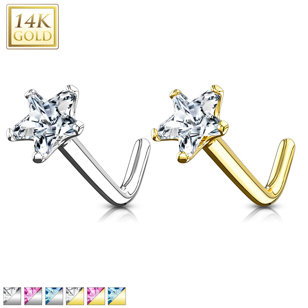 14K Gold Crystal Claw-Set Star Nose Pin 20g