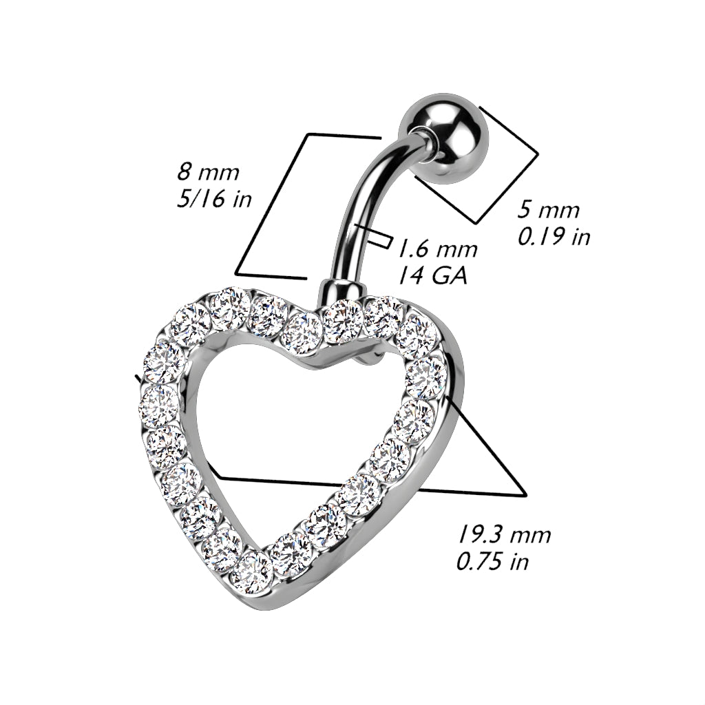 Bezel-Set Heart Inverted Navel Dangle 14g
