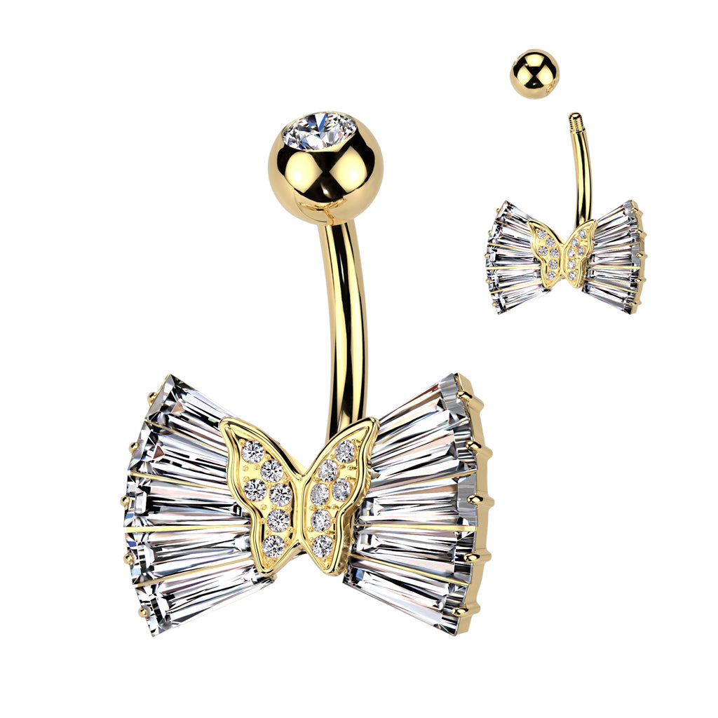 Butterfly Flare Crystal Navel Barbell 14g