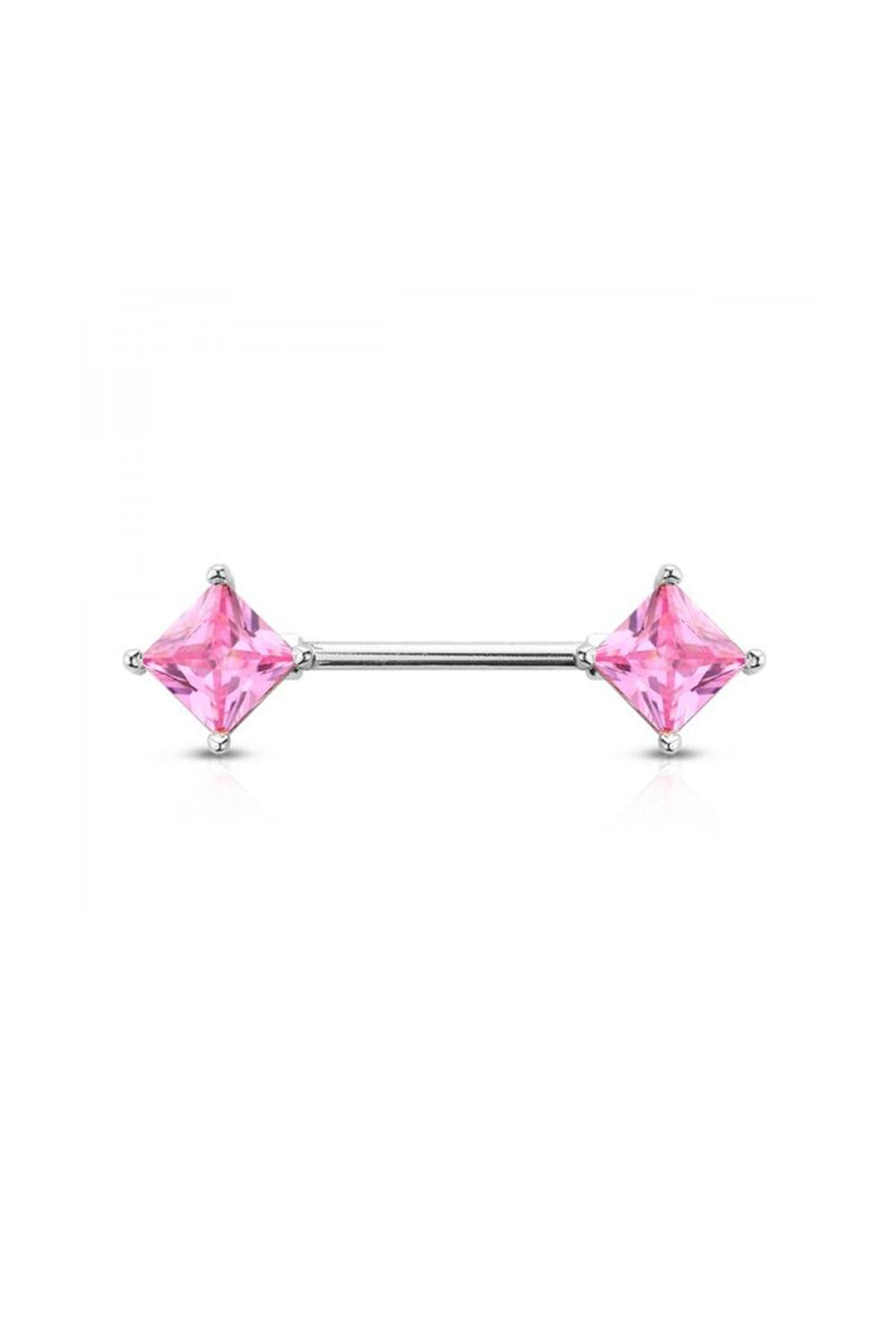 Claw-Set Pink Diamond Cut Crystal Nipple Barbell 14g