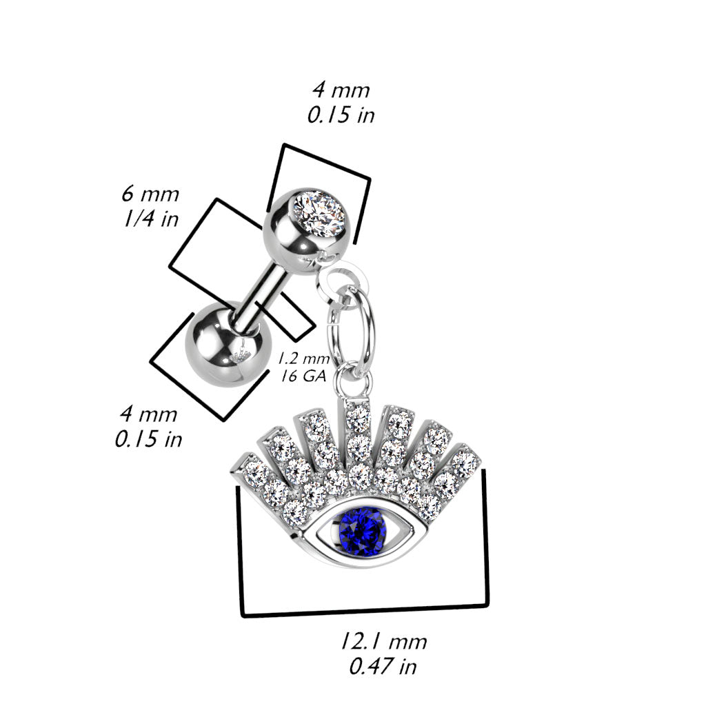 Crystal Blue Eye Dangle Ball Back 16g