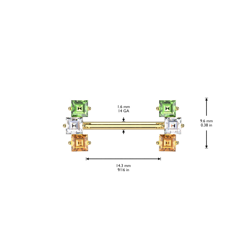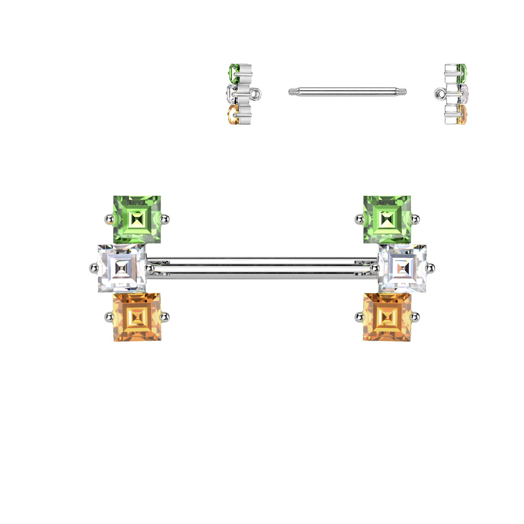Multicolor Square Crystal Nipple Barbell 14g