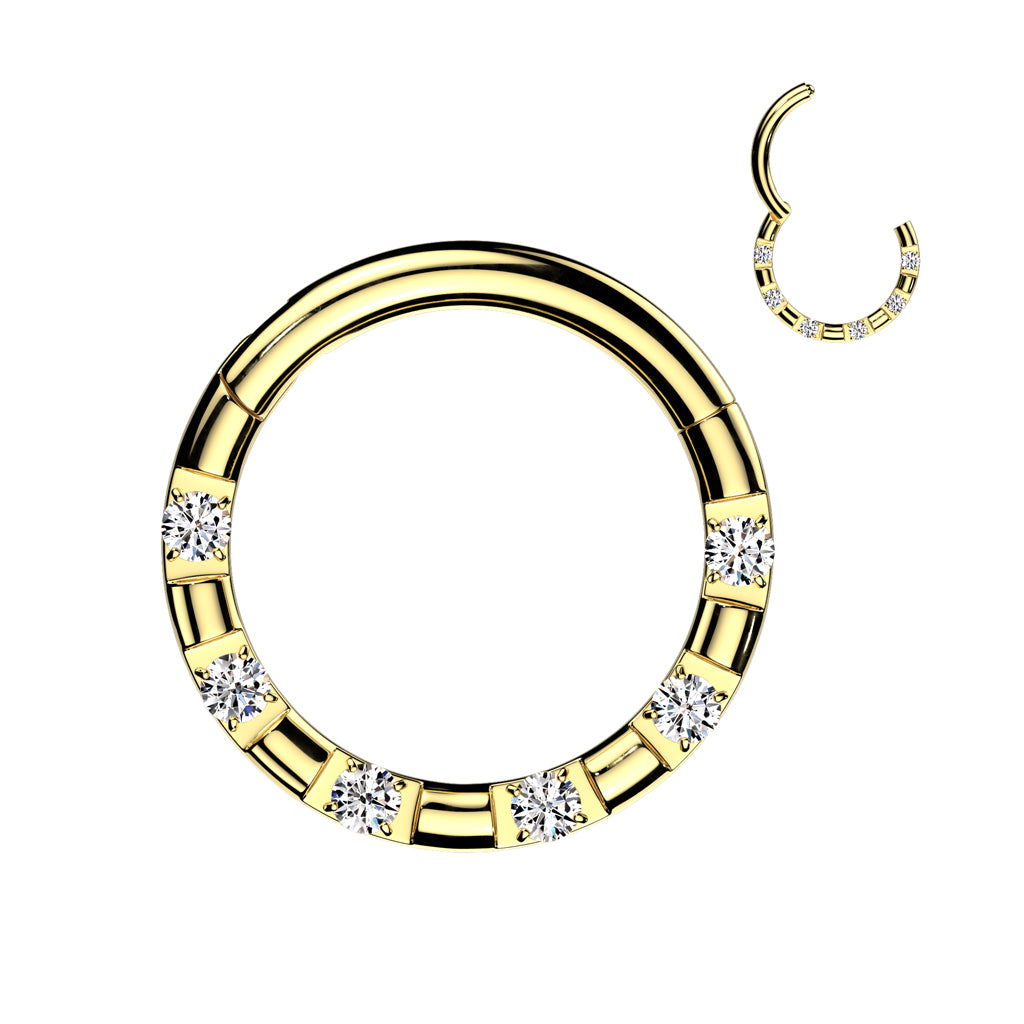Premium Alternating Six Crystal Hinged Segment Ring 16g
