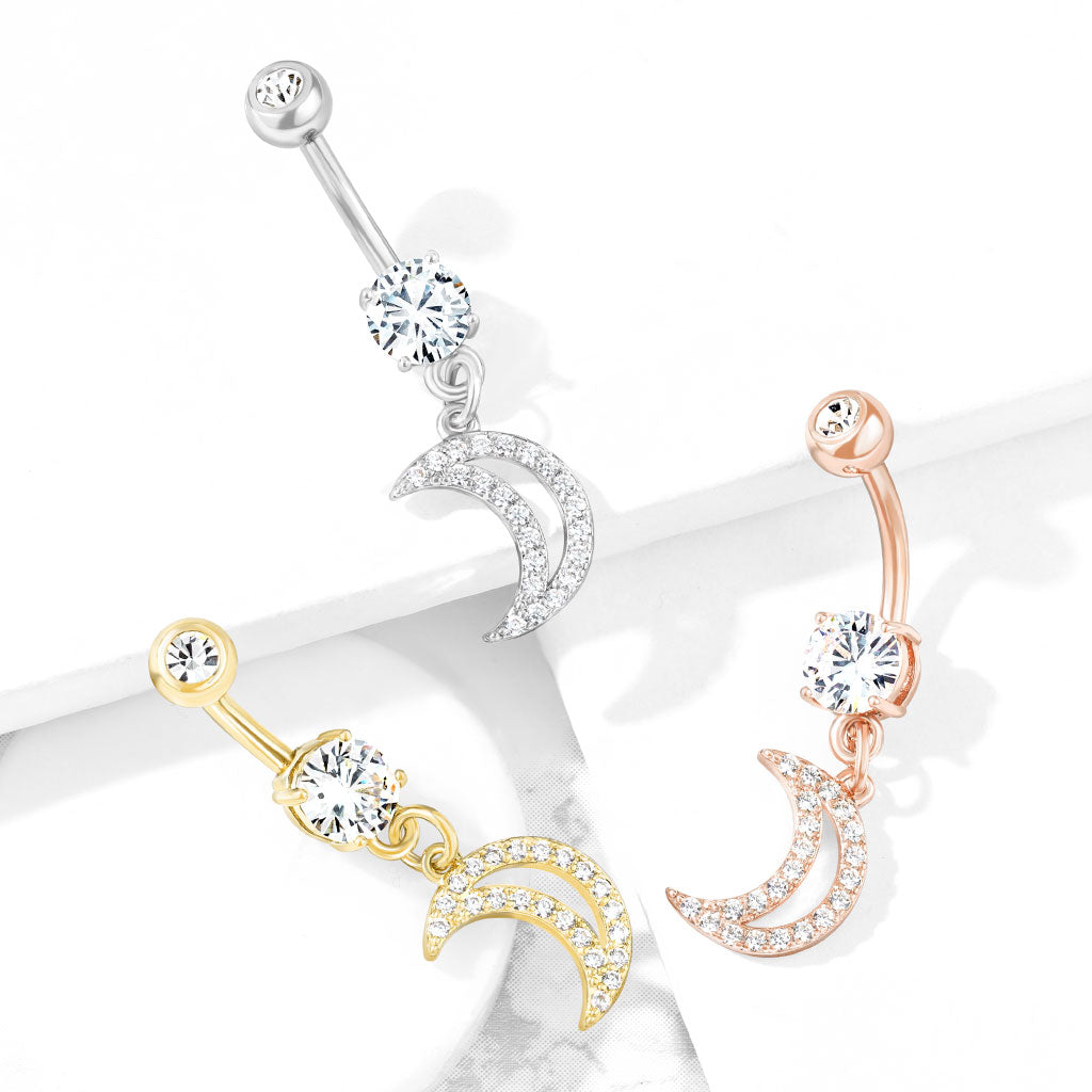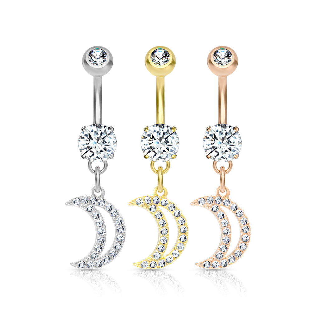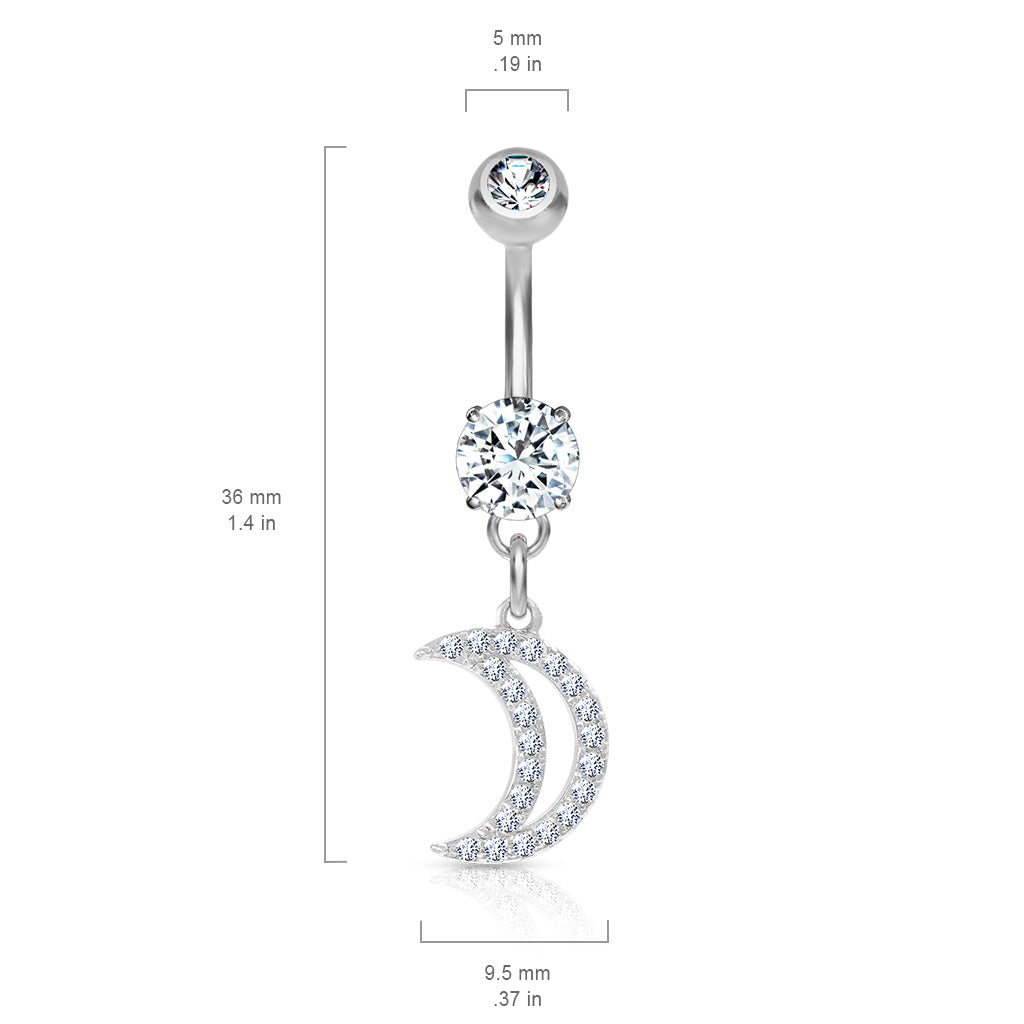 Premium Crystal Crescent Moon Navel Dangle 14g