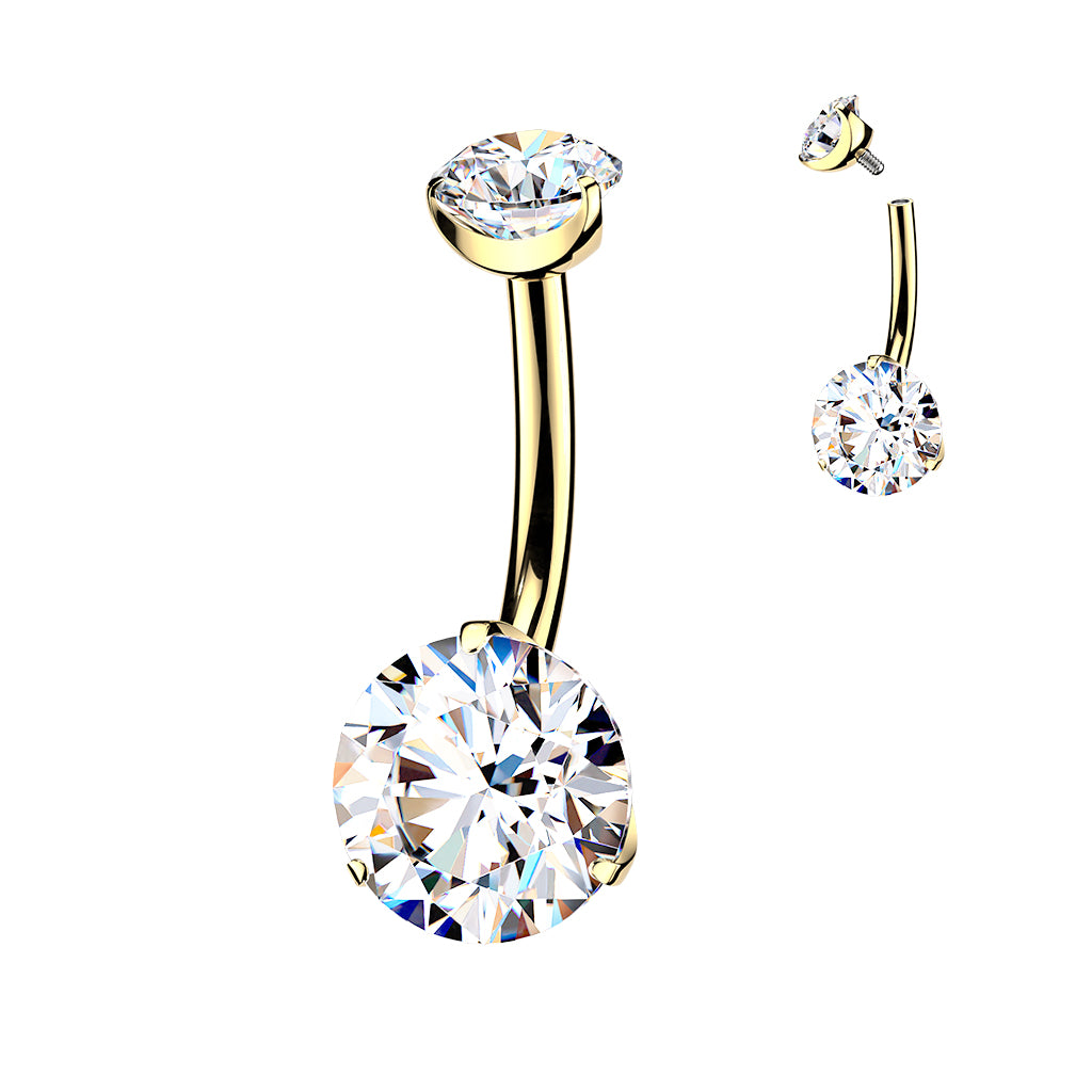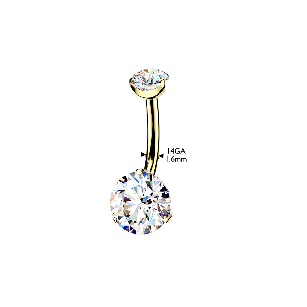 Premium G23 Titanium 24k Gold‑Coated Claw‑Set Crystal Navel Barbell 14g