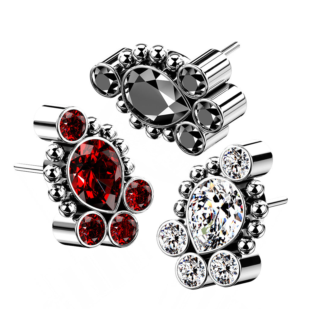 Premium G23 Titanium Crystal Teardrop Dotwork Threadless Top