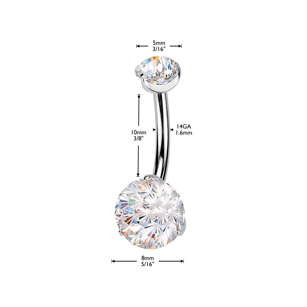 Premium G23 Titanium Fire-Cut Claw‑Set Crystal Navel Barbell 14g