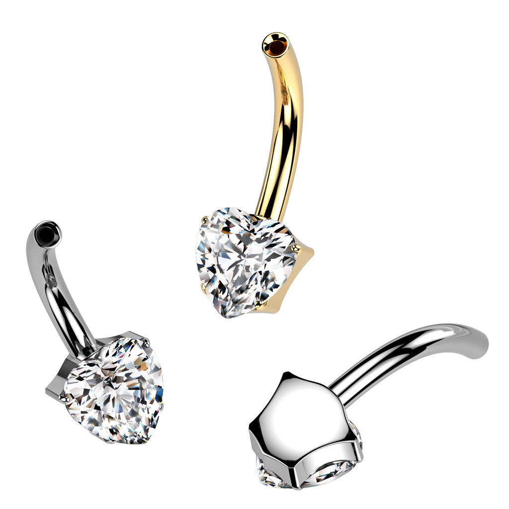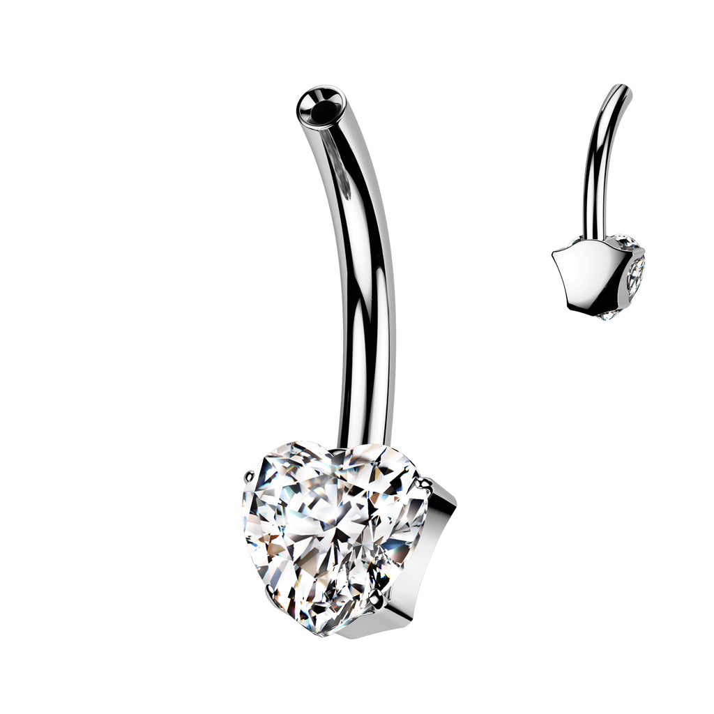 Premium G23 Titanium Threadless Claw Set Crystal Heart Navel Barbell