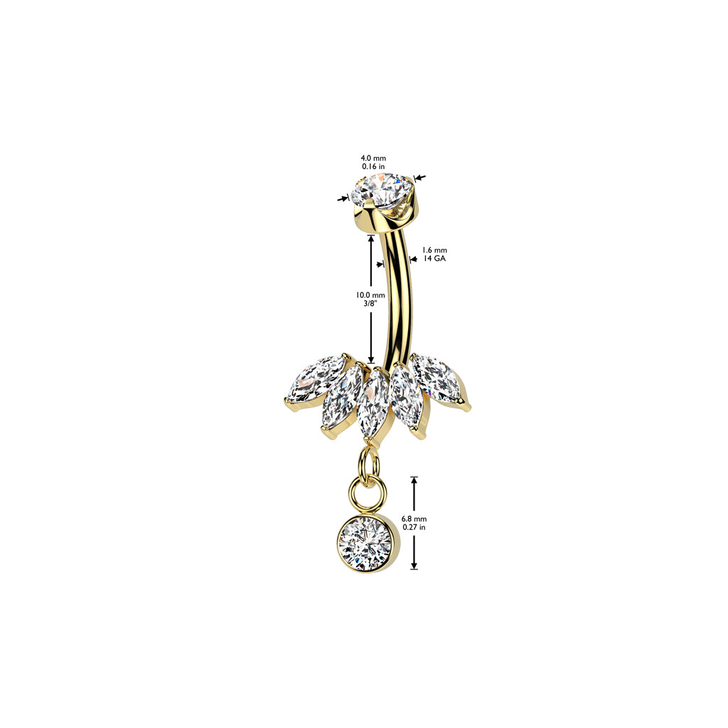 Premium Marquise Single Accent Crystal Navel Dangle 14g