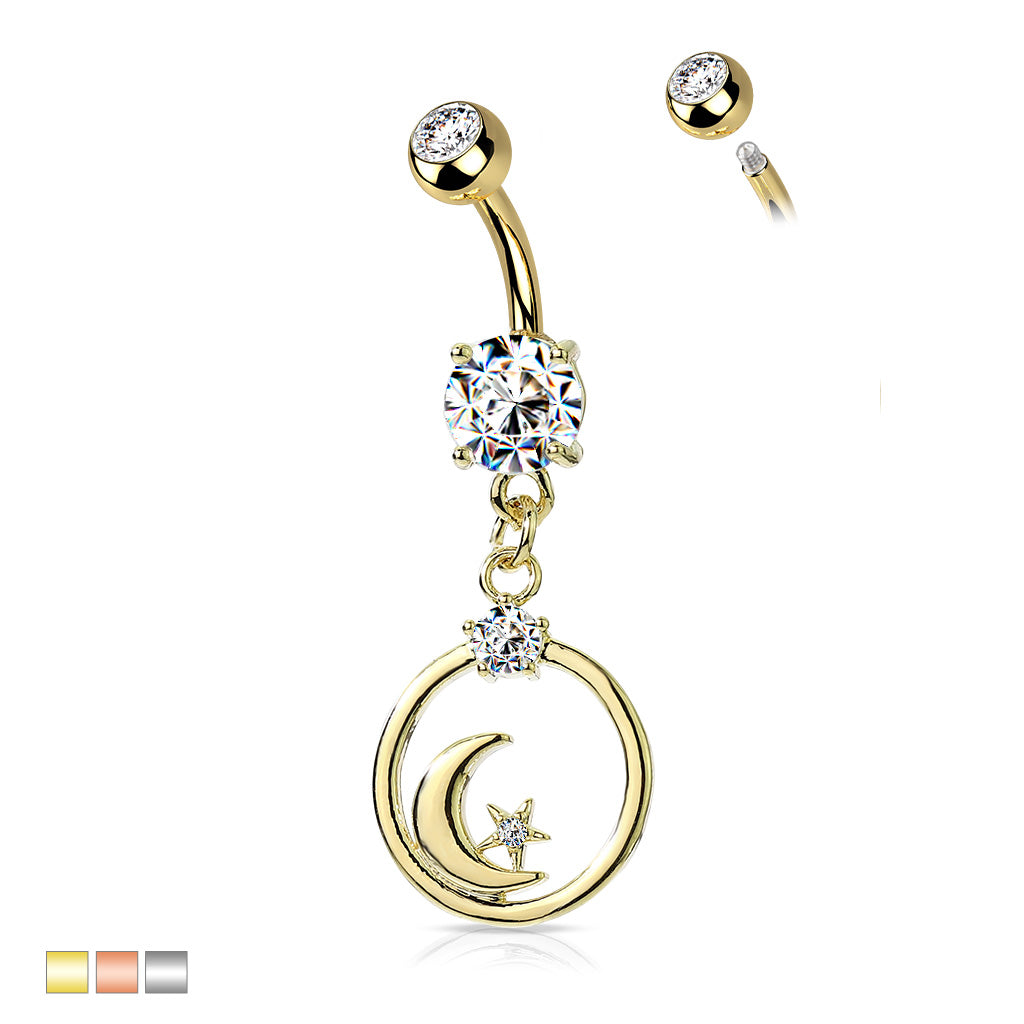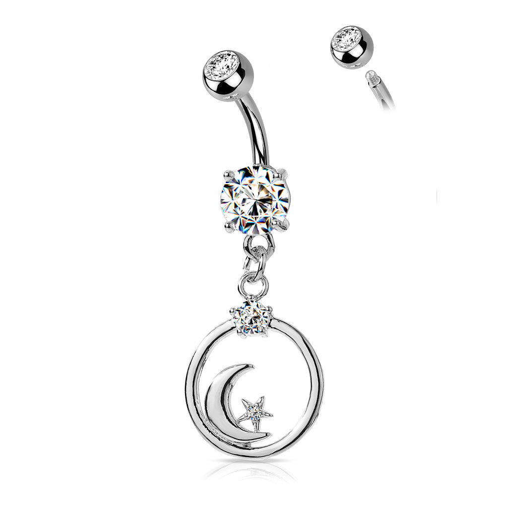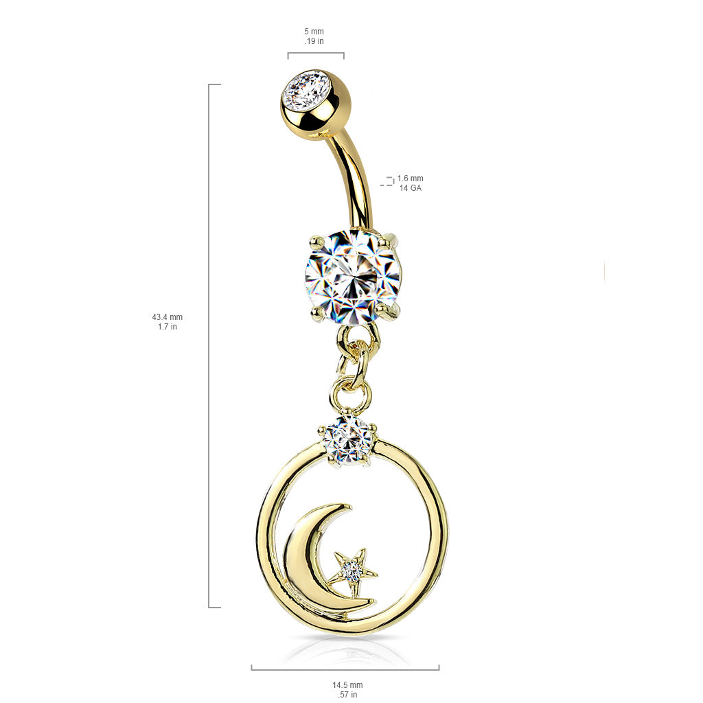 Premium Round Moon and Stars Hoop Navel Dangle 14g