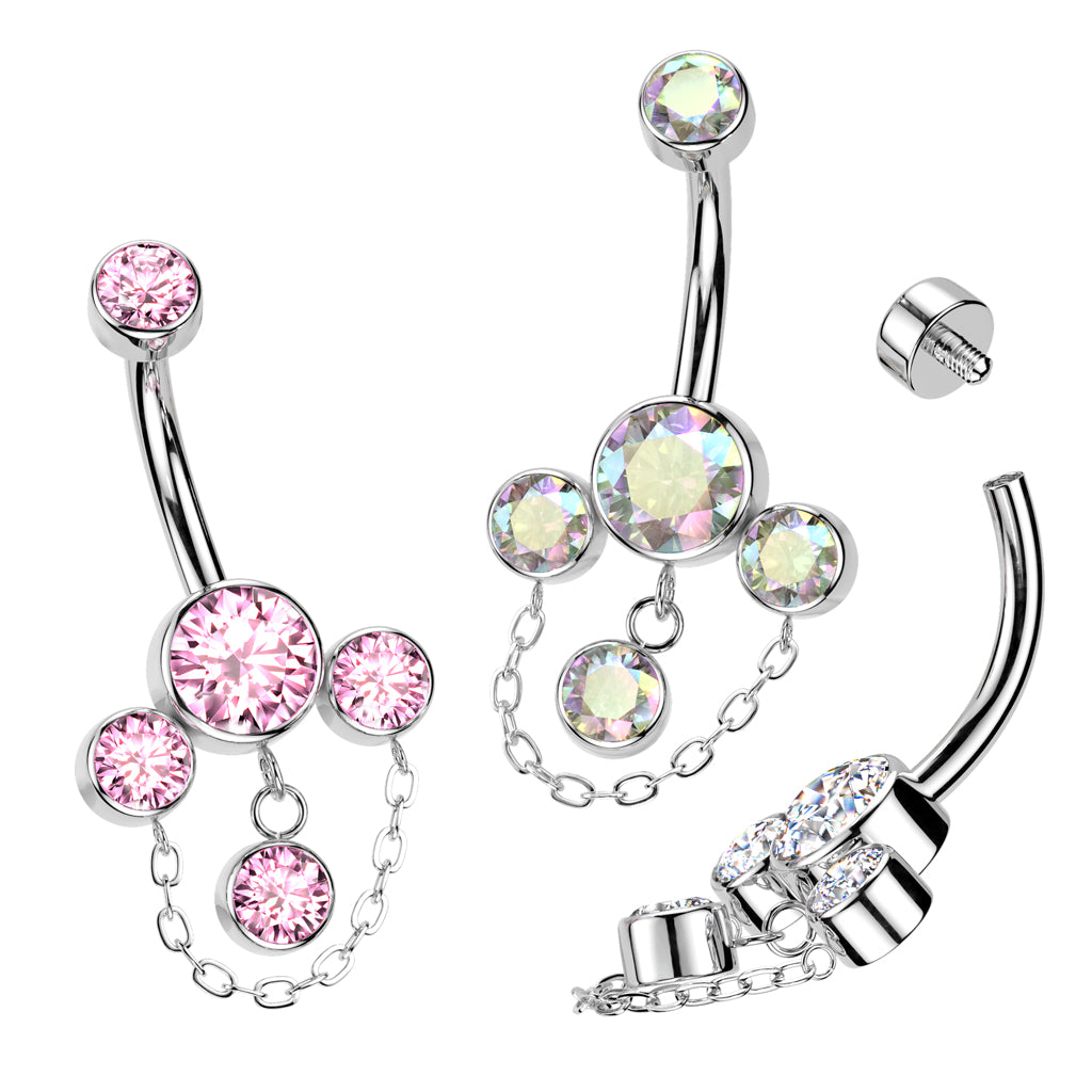 Premium G23 Titanium Bezel-Set Crystal Cluster Chain Navel Dangle 14g