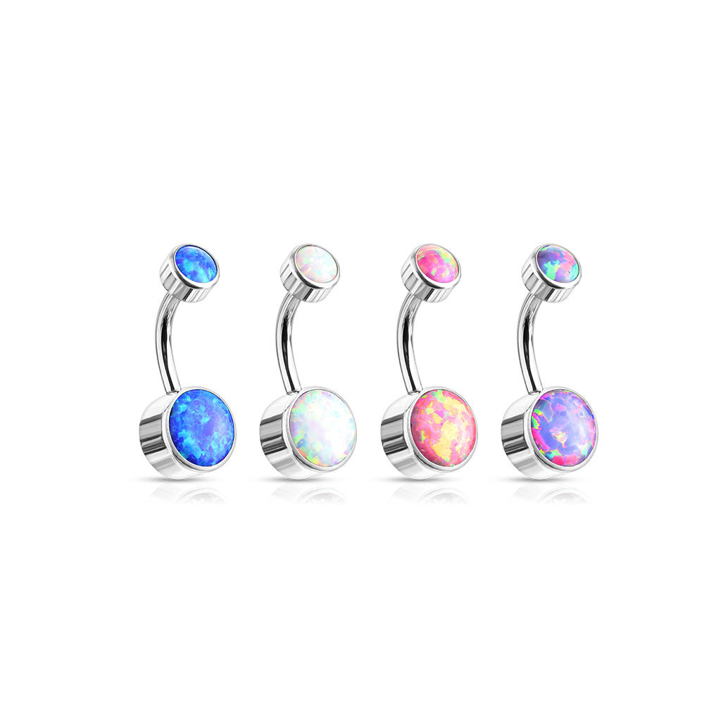 Premium Titanium Bezel-Set Opal Navel Barbell 14g