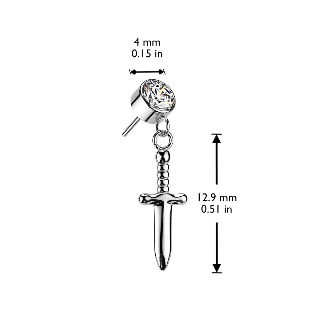 Premium G23 Titanium Crystal Dagger Luxe Threadless Top