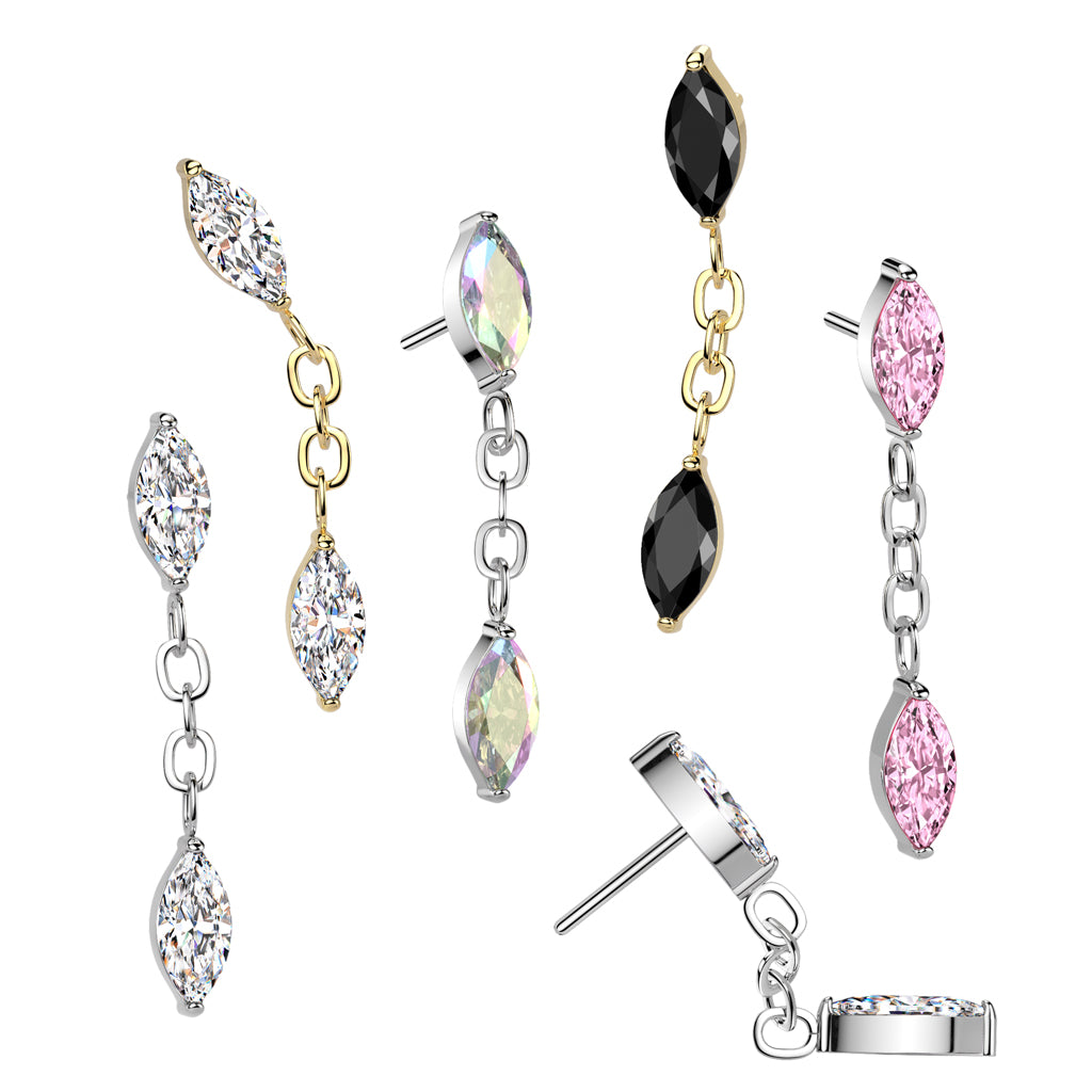 Premium G23 Titanium Double Chain Marquise Luxe Threadless Top