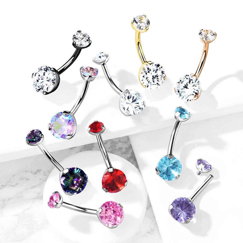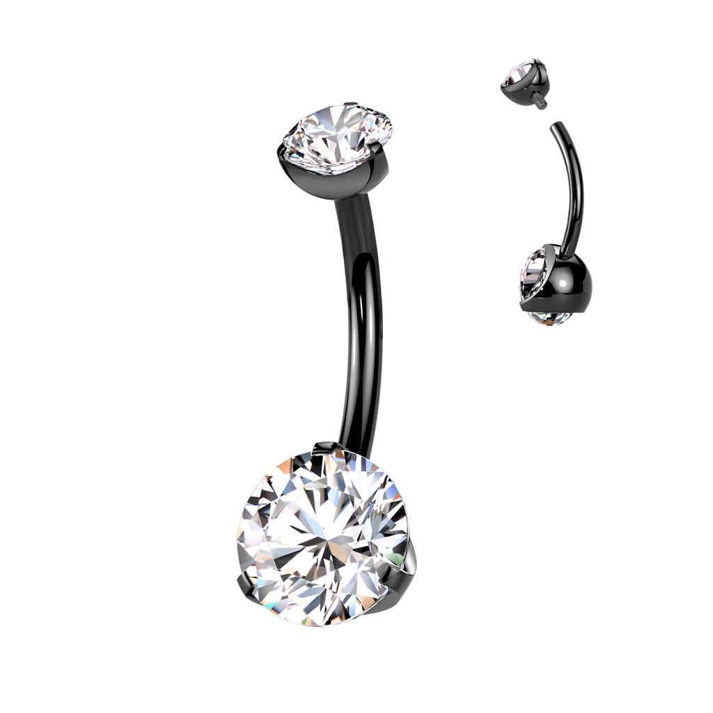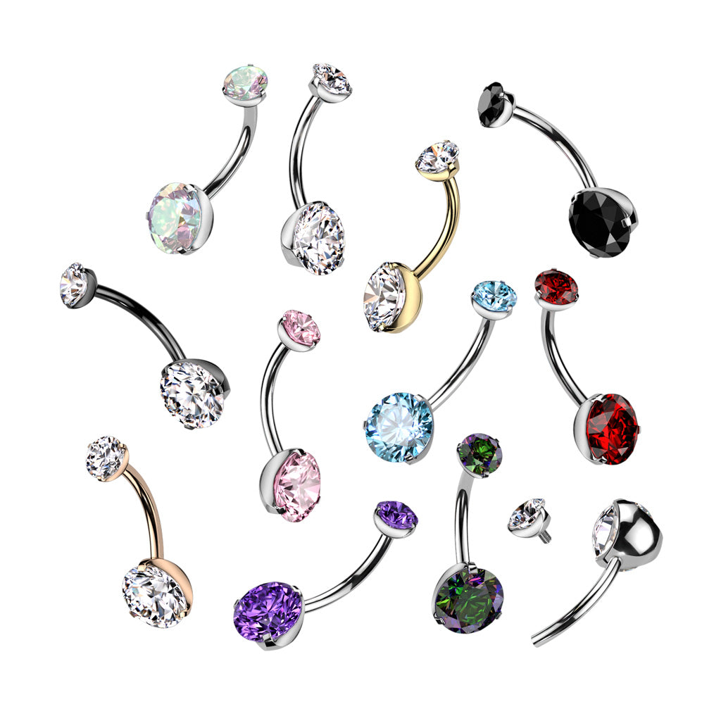 Premium G23 Titanium Round Claw-Set Crystal Navel Barbell 14g