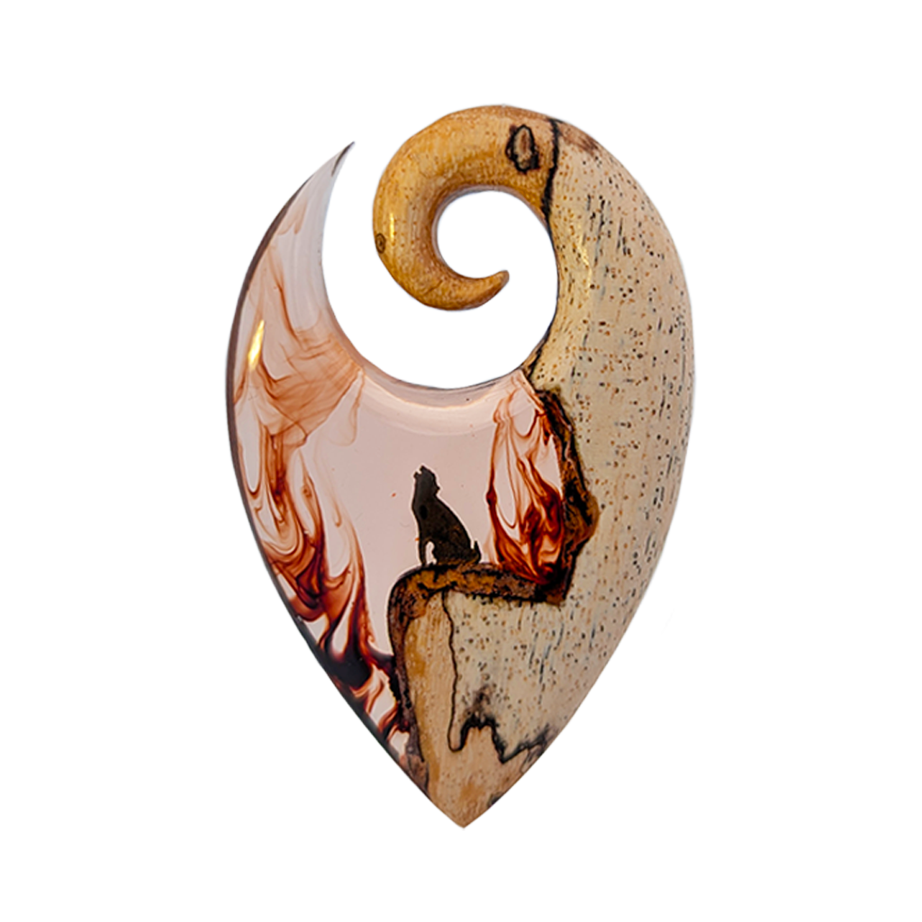 Wood and Epoxy Howling Wolf Ear Weights 0g